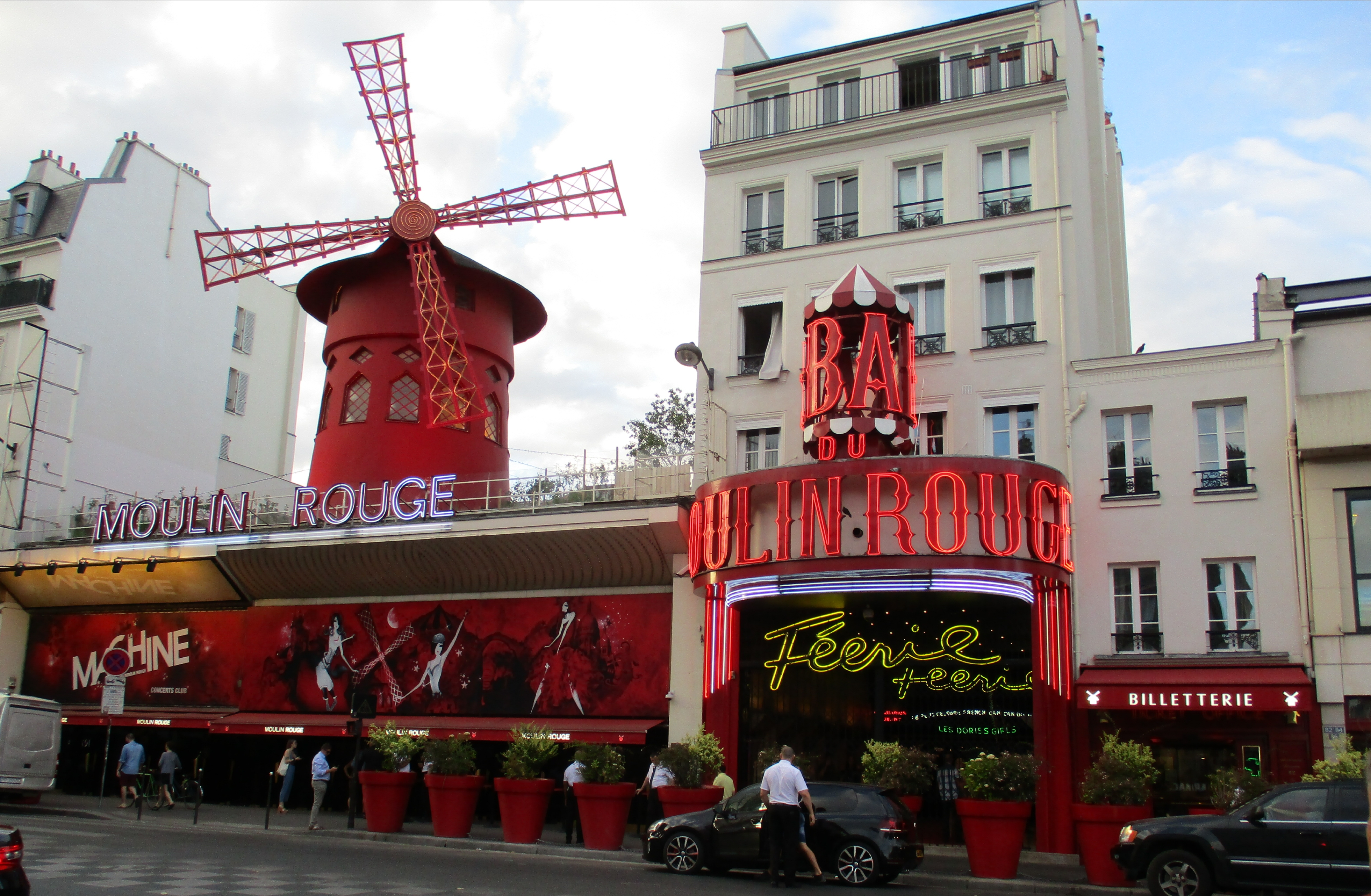 O Moulin Rouge e o seu moinho vermelho, criado em 1889, não é um monumento ou um edifício público, mas é reconhecido mundialmente!! Fica numa rua bastante movimentada, repleta de restaurantes e vida nocturna!! Passei por lá algumas vezes, pois ficava perto do meu hotel e o ambiente é bastante festivo em seu redor!!