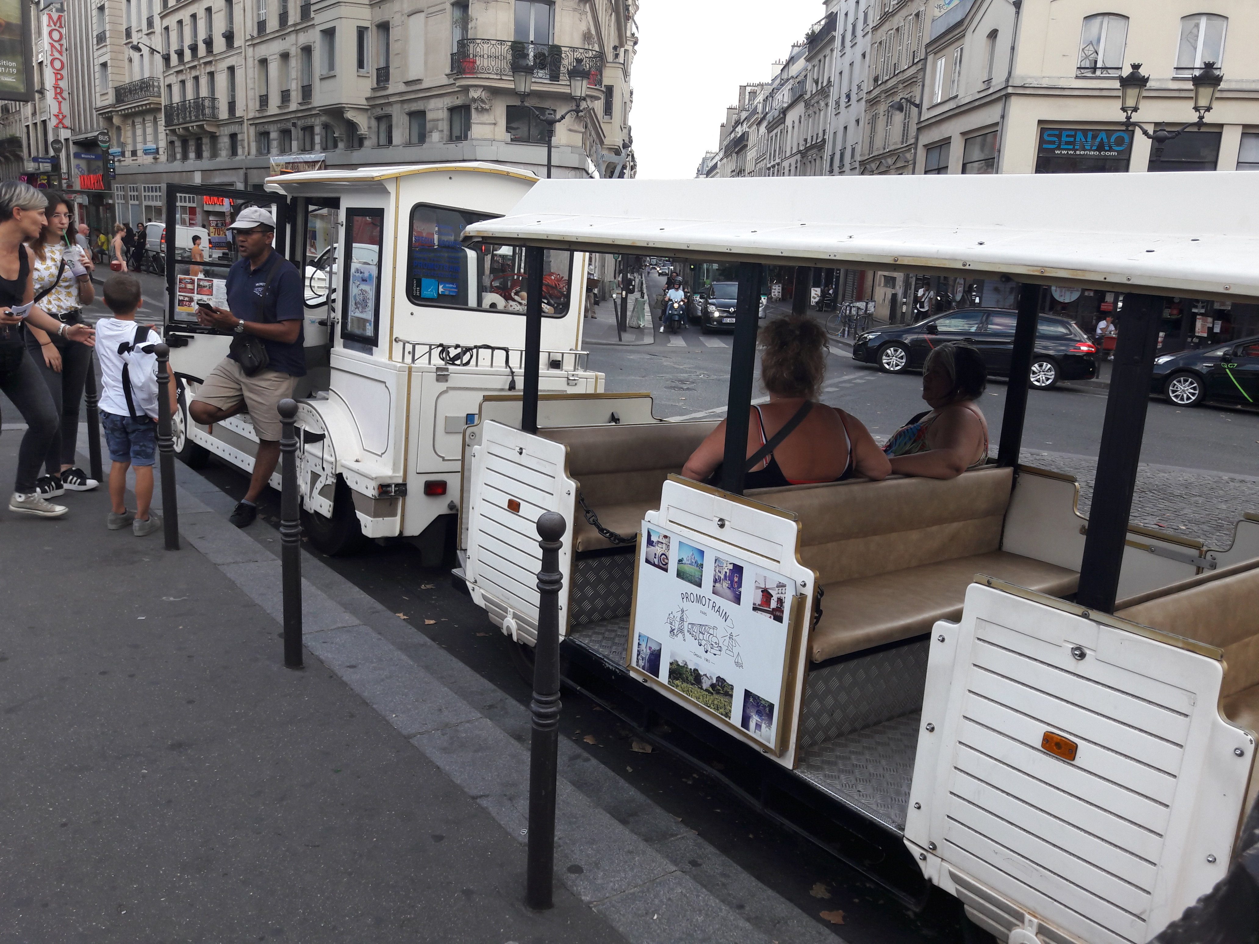 - Para quem não quer fazer a subida a pé até ao Sacré-Coeur, pode sempre fazer como eu… que fui até ao Moulin Rouge e aí fica a paragem de um pequeno “comboio” turístico que faz o percurso até à Basílica. É o Promotrain! É uma viagem um bocado turbulenta, porque é em paralelos e se tentar tirar fotos vão certamente ficar tremidas!! 🙂