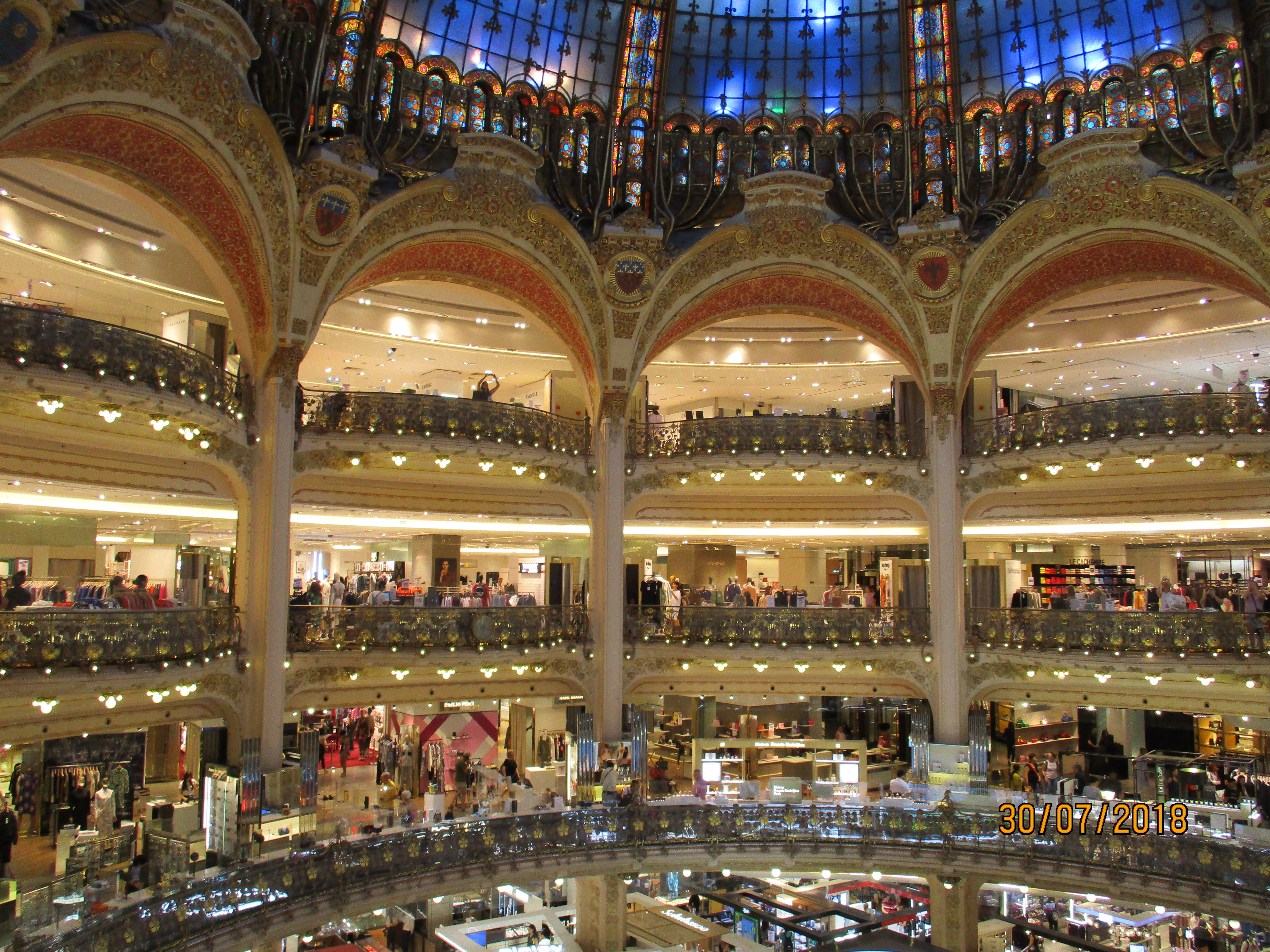 Situadas no 9º Arrondissement, as Galerias Lafayette ficam a poucos minutos da Opera Garnier! Muito populares pelas suas lojas das melhores e mais caras marcas a nível mundial, tipo: Chanel; Burberry; Gucci; Giorgio Armani entre muitas outras! Para mim este espaço é visita obrigatória pela beleza do interior do edifício, mas principalmente pelo gigante rooftop que nos oferece umas vistas fantásticas sobre a cidade da luz e claro, é grátis!