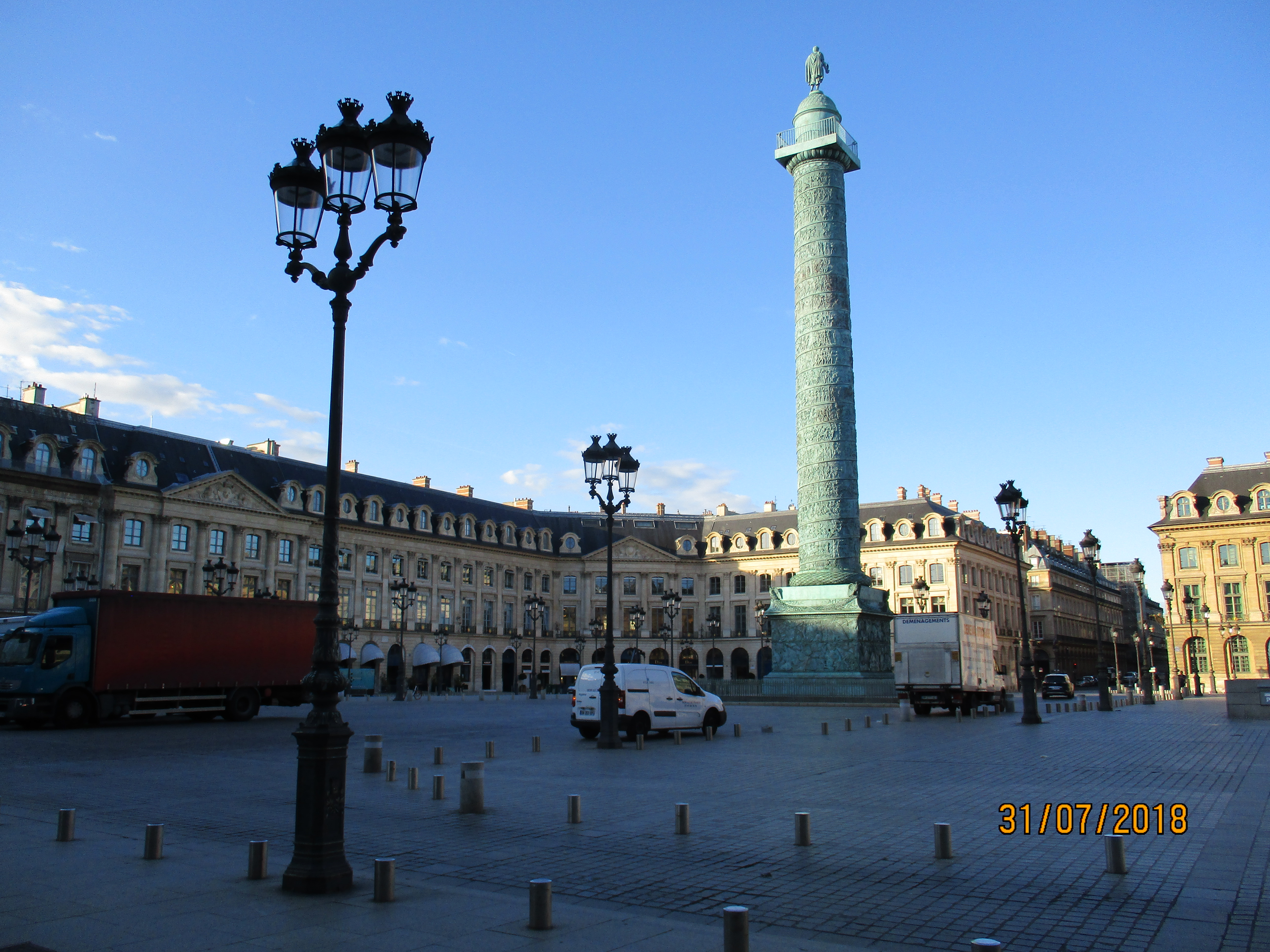 - A Praça Vendôme, sinónimo de luxo em Paris, com uma coluna mandada construir por Napoleão onde celebra as conquistas do Imperador e do exército francês;
