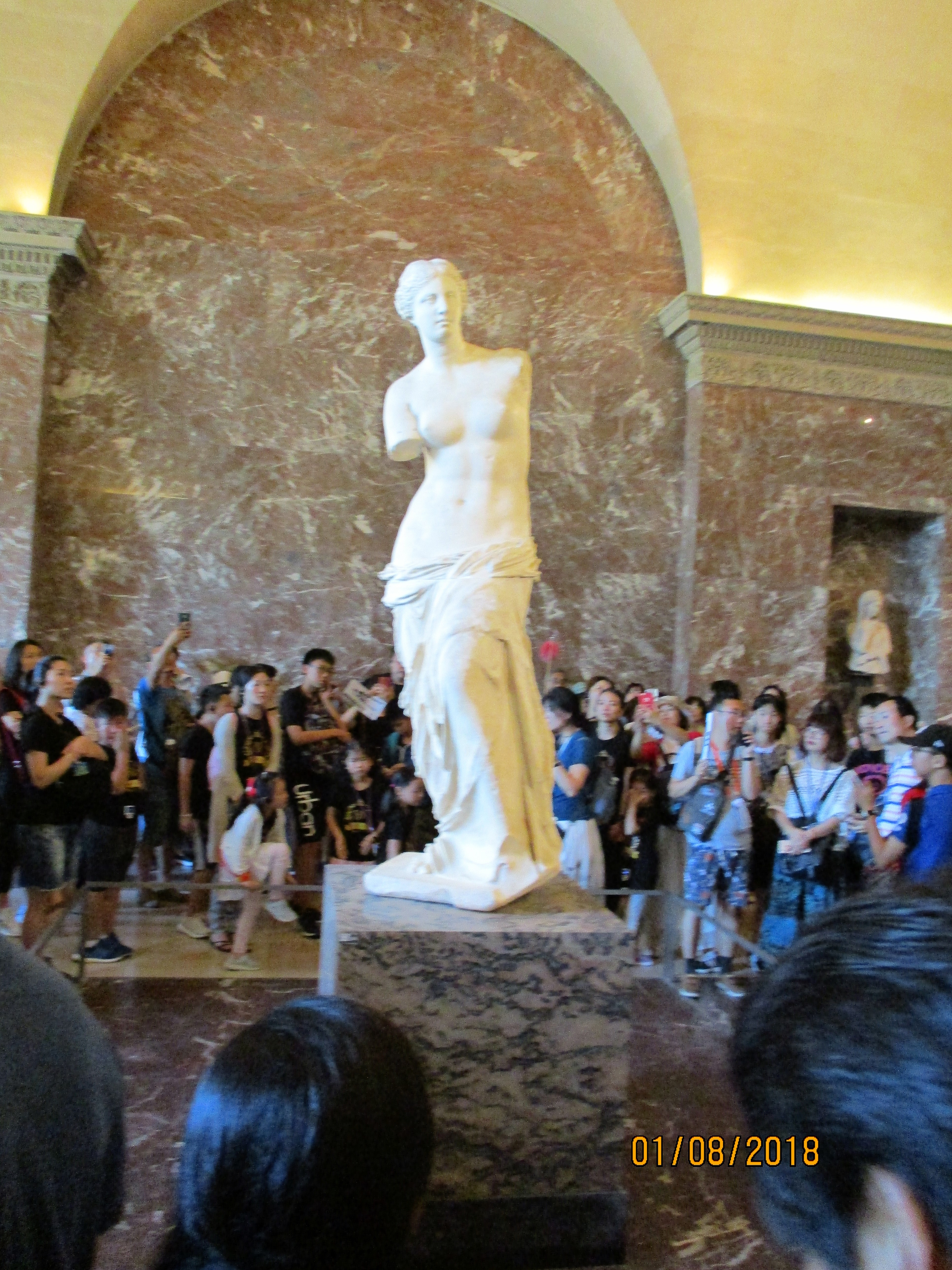 - Depois de estar lá dentro tem três entradas: 1ª é a DENON, onde fica a Mona Lisa (sempre com indicações para lá chegar) e pinturas de Leonardo da Vinci; 2ª é a SULLY, vai encontrar arte medieval como Vénus de Milo, o Escriba, Banho Turco; e a 3ª é a Richelieu com esculturas francesas e os apartamentos de Napoleão