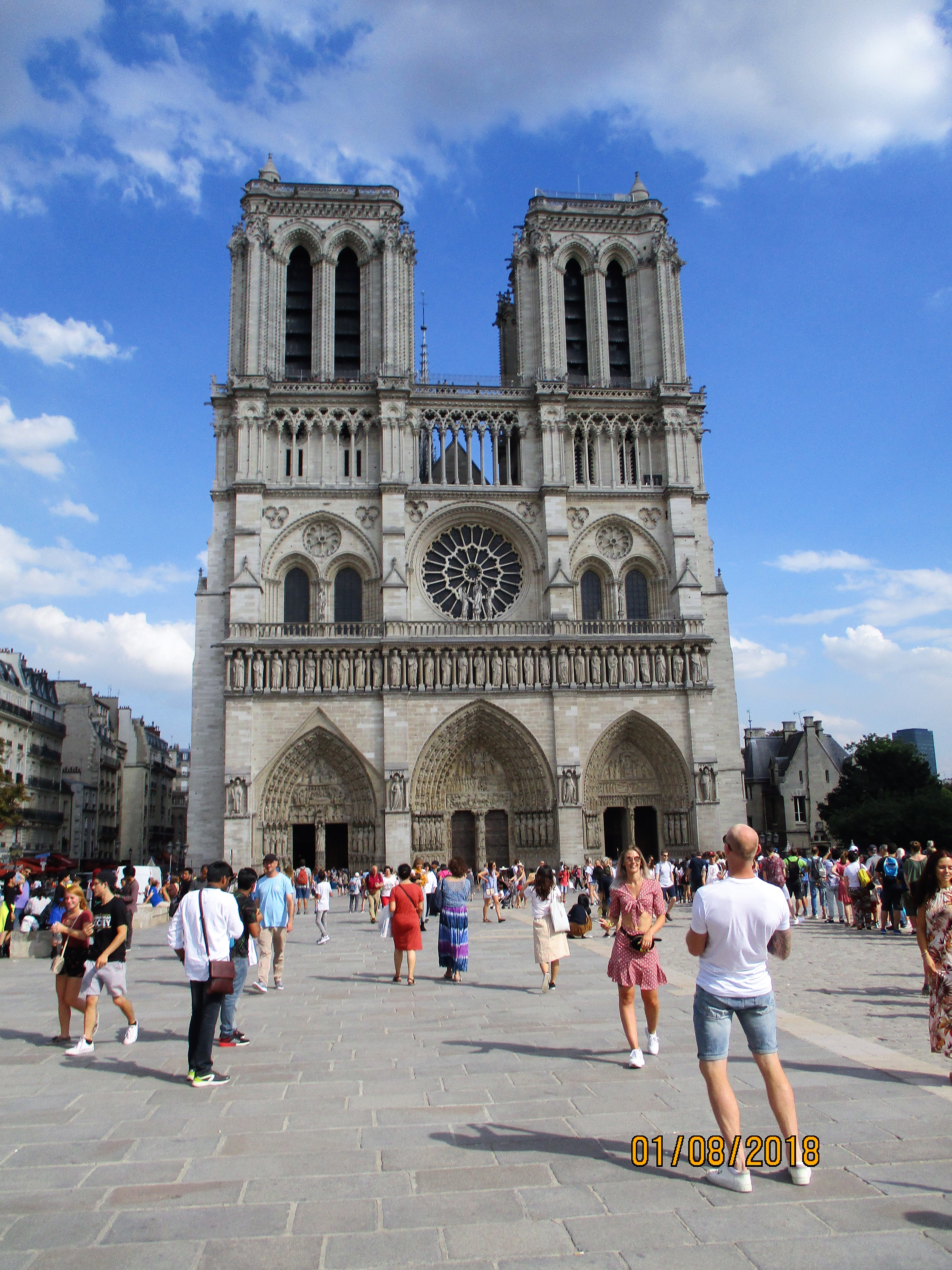A Catedral Notre Dame, foi dedicada a Maria, mãe de Jesus e a sua construção começou em 1163, tem duas torres de 69 metros na sua fachada, arquitectura gótica com colunas altas e vitrais coloridos. A Catedral localiza-se na Praça Parvis que fica na Île de la Cité. Vários acontecimentos decorreram nesta Catedral, tais como: coroação de Henrique VI, Napoleão Bonaparte e sua mulher Josefina de Beauhamais e a beatificação de Joana D’Arc.