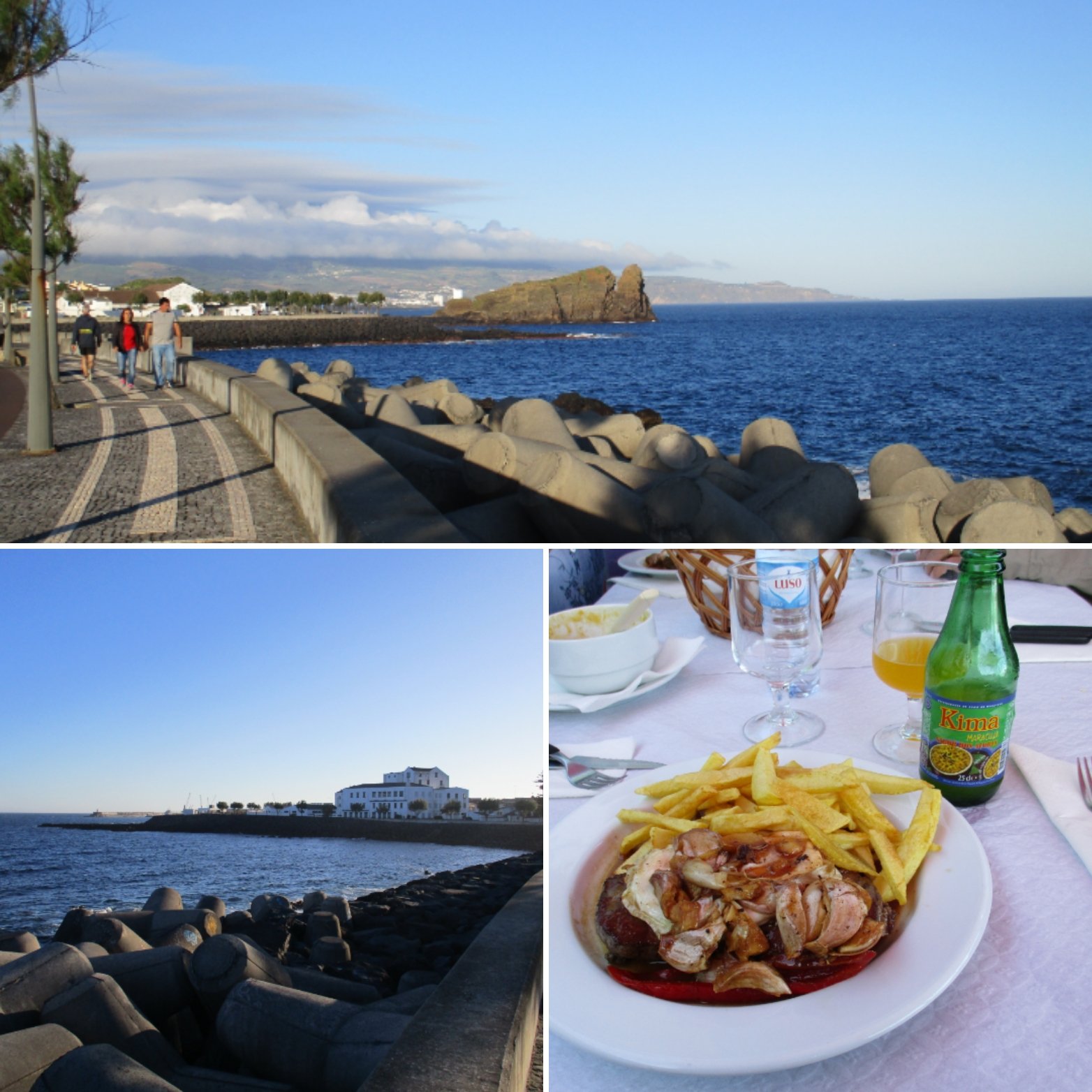 Fomos então ao supermercado para rechear o frigorífico e preparamo-nos para ir jantar!! E como era dia de festa, pois o meu pai celebrava os seu 74 anos, começamos a nossa estadia em grande e fomos experimentar o famoso “bife”!! Bem perto do nosso alojamento, fomos (sem reserva) até ao bem conhecido restaurante “O Galego”, e como ainda era cedo conseguimos uma mesa na esplanada com vista para o mar!!;)