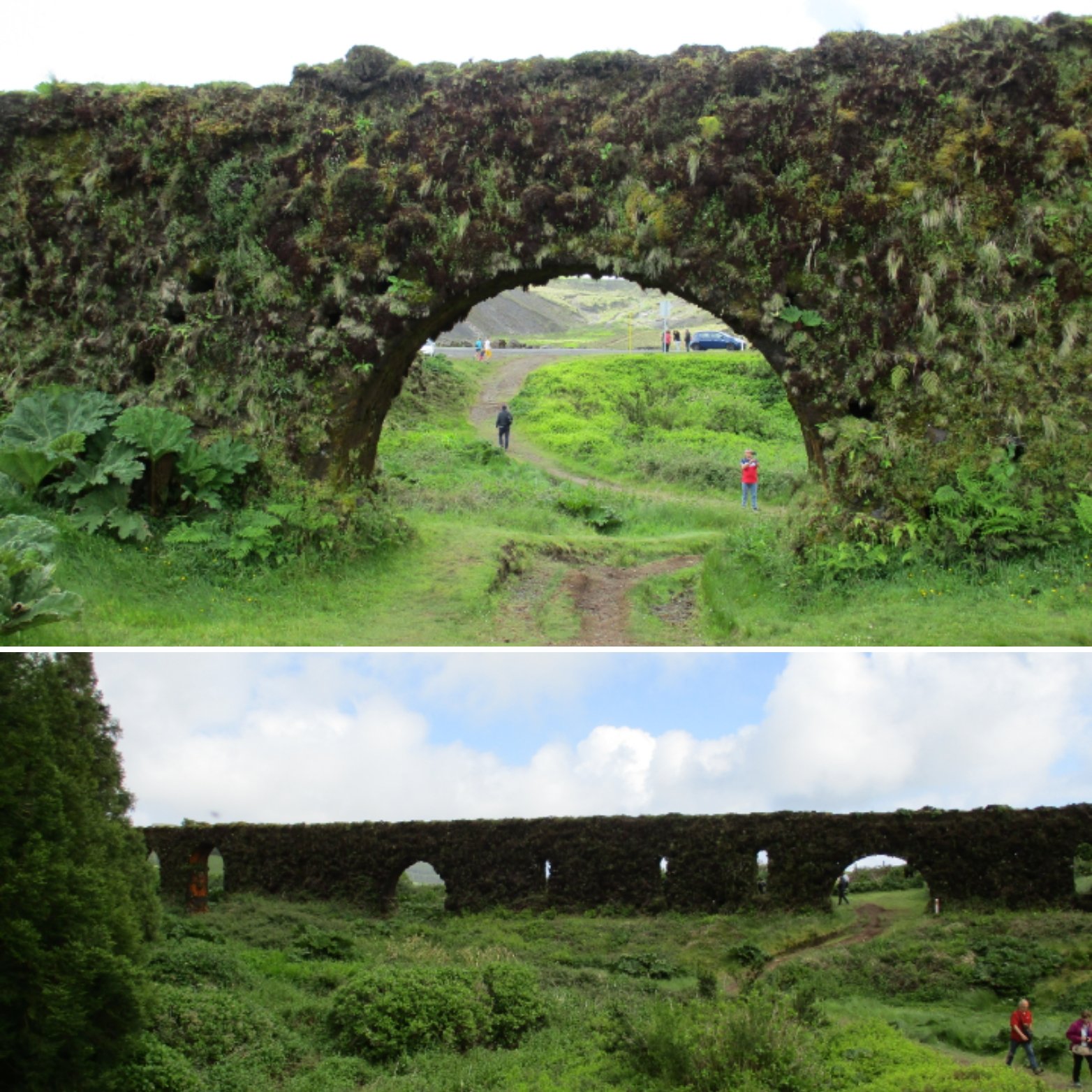 No Aqueduto do Carvão, podemos parar, apreciar de perto e tirar fotos! É uma construção em pedra que está completamente coberta de musgo!!