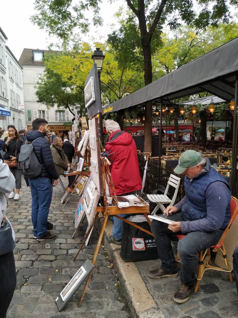 Bem perto da Basílica do Sagrado Coração, a Place de Tertre é uma autêntica galeria de arte ao ar livre, onde inúmeros artistas de rua pintam as suas telas e nos deliciam com a sua arte!! Mais uma vez em Montmartre, uma pequena praça, bem pitoresca e colorida, rodeada de arte, comércio, restaurantes, bares e muitas pessoas!! Daqui já conseguimos ter um pequeno deslumbre da basílica que fica a poucos minutos de distância!!