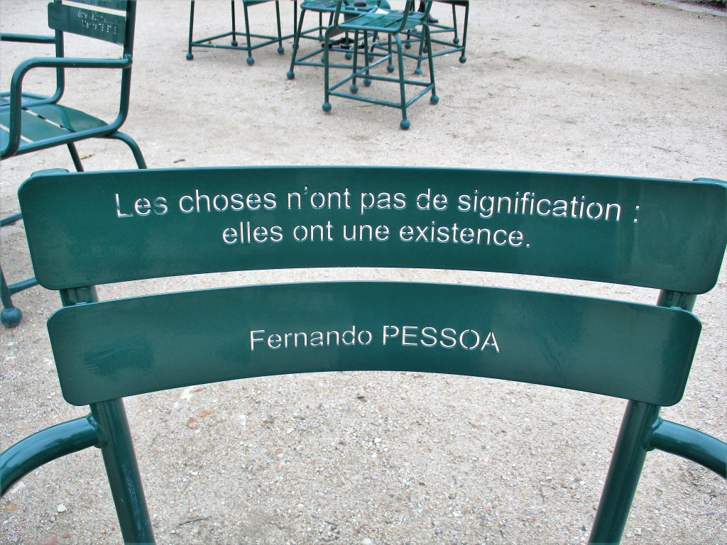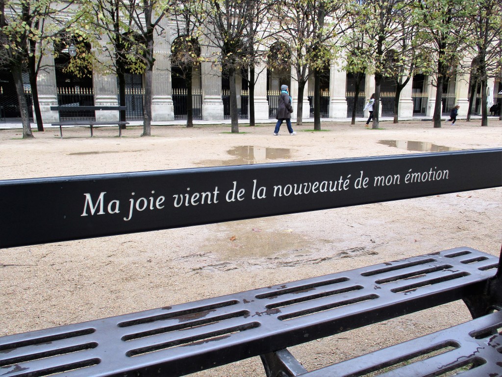 Bancos gravados no jardim com poemas de Cocteau e Collete!