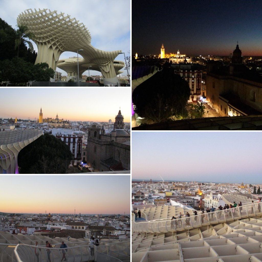 E como a hora do pôr do sol estava a chegar, depois do check-in no hotel, fui até ao Metropol Parasol, que ficava a cerca de 700 metros e nada melhor do que apreciar uma cidade pela primeira vez das alturas e quando o sol se põe!!