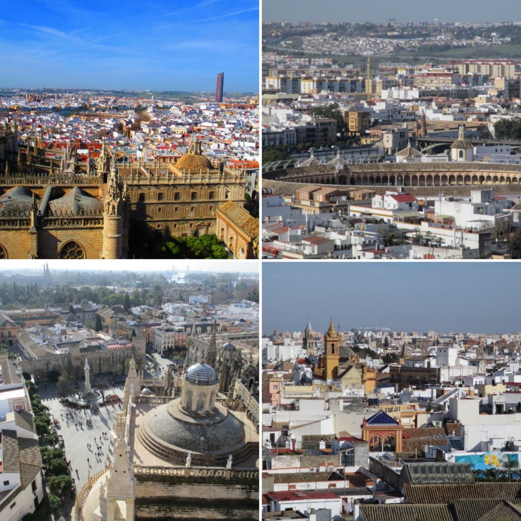 Incluída no bilhete da Catedral, o acesso à Giralda é feito pelo seu interior, e são 34 rampas e meia dúzia de degraus sempre a subir… e chegando ao topo, aos seus 75 metros de altura, a recompensa são as vistas sobre a cidade de 360º, que para mim é sem qualquer dúvida, o melhor miradouro de Sevilha!!