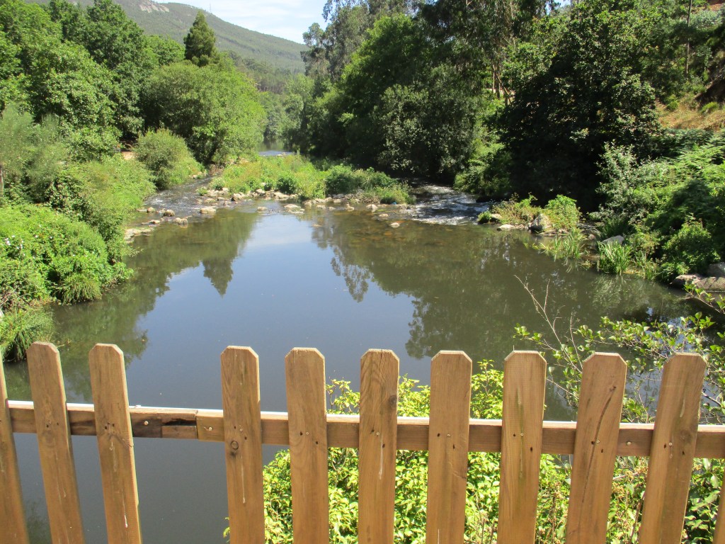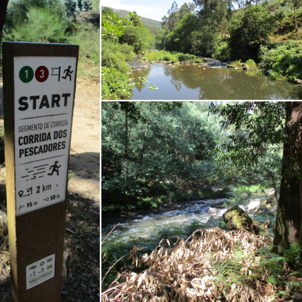 Fomos então para o lado esquerdo, e no início do caminho existe uma placa a sinalizar a “Corrida dos Pescadores”, paramos para lanchar, bem na margem do rio! Não fomos a banhos, mas tiramos as sapatinhas e relaxamos os pés nas águas do Rio Ferreira, que por sinal não era gelada e apesar de por lá estarem várias pessoas, a tranquilidade do local é fantástica, pois o som do rio a correr abafa qualquer barulho humano e a natureza em redor merece admiração!!