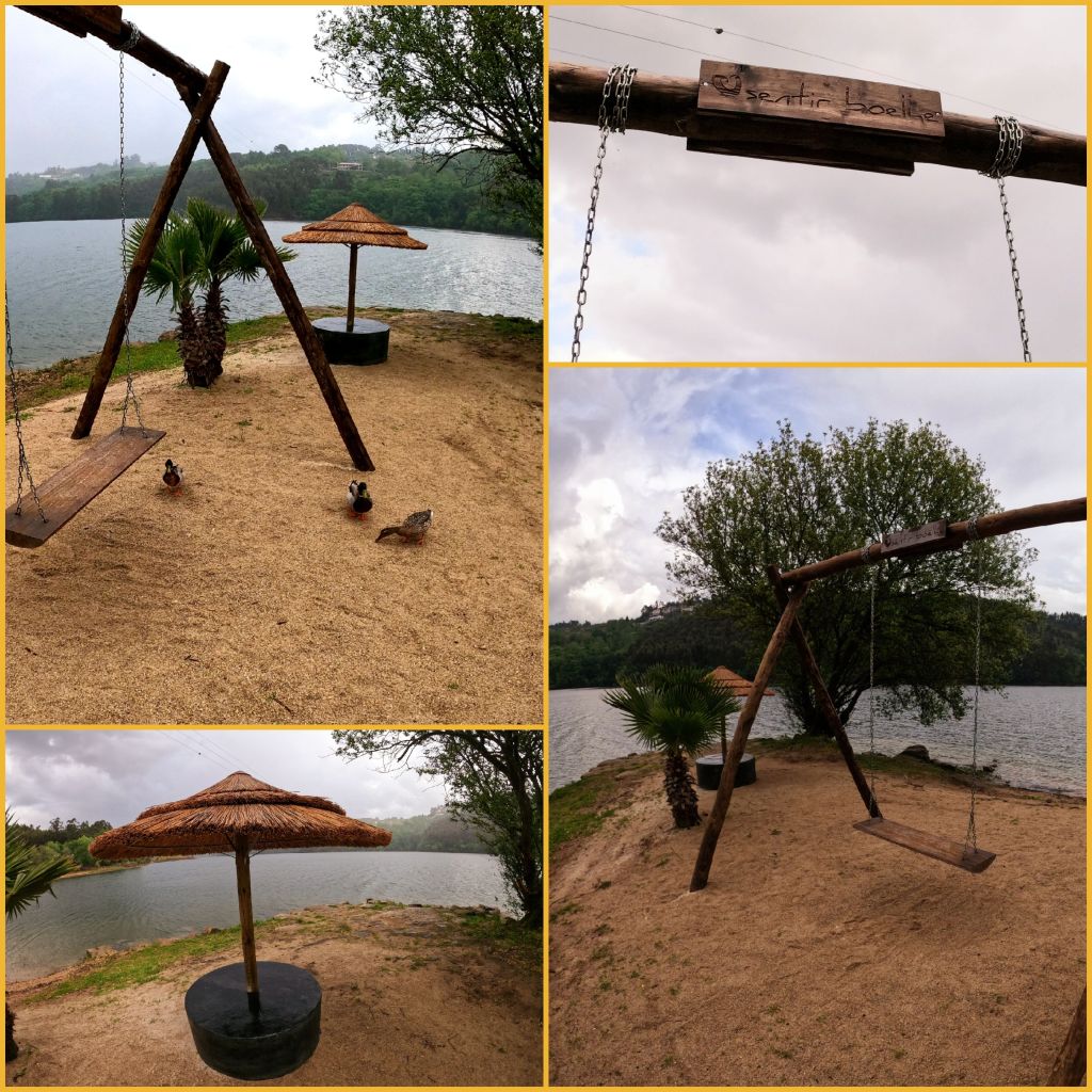 Boelhe estava próximo e percorrendo mais uns caminhos estreitos, felizmente desertos, fomos até ao “Baloiço Sentir Boelhe” que fica no Parque Fluvial das Famílias.