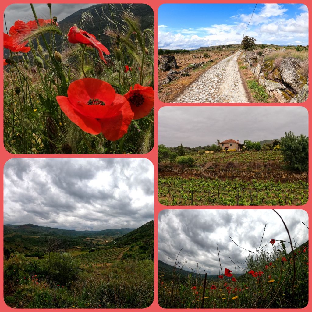 Um pouco mais à frente, por caminhos de terra batida, vinhas, oliveiras, papoilas vermelhas e flores amarelas do campo entre muitas outras, chegamos às primeiras ruínas, Zimbro II, uma “Villa rústica” romana do século III d.C.