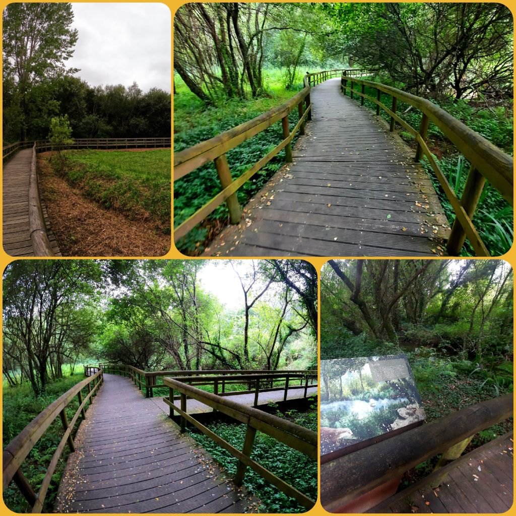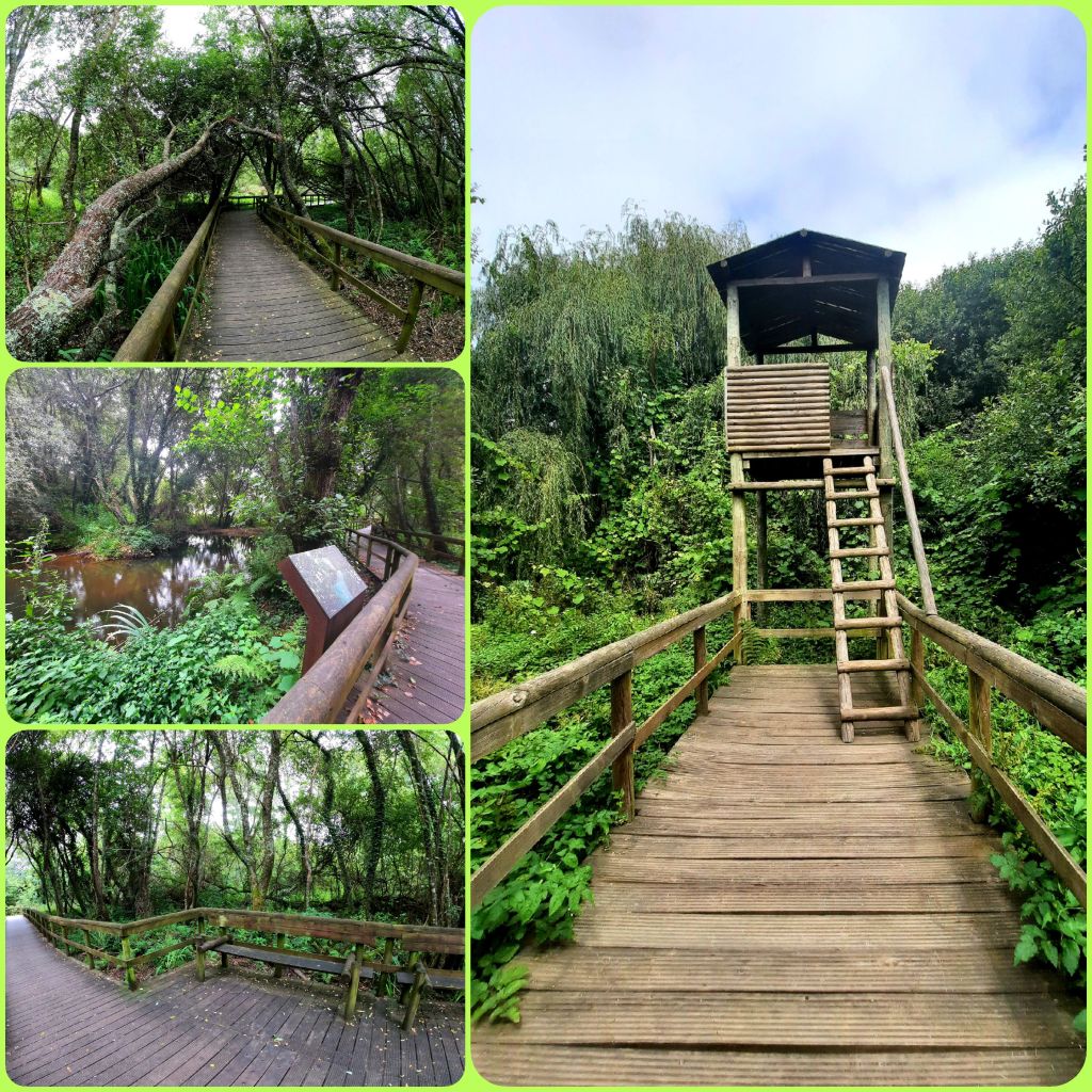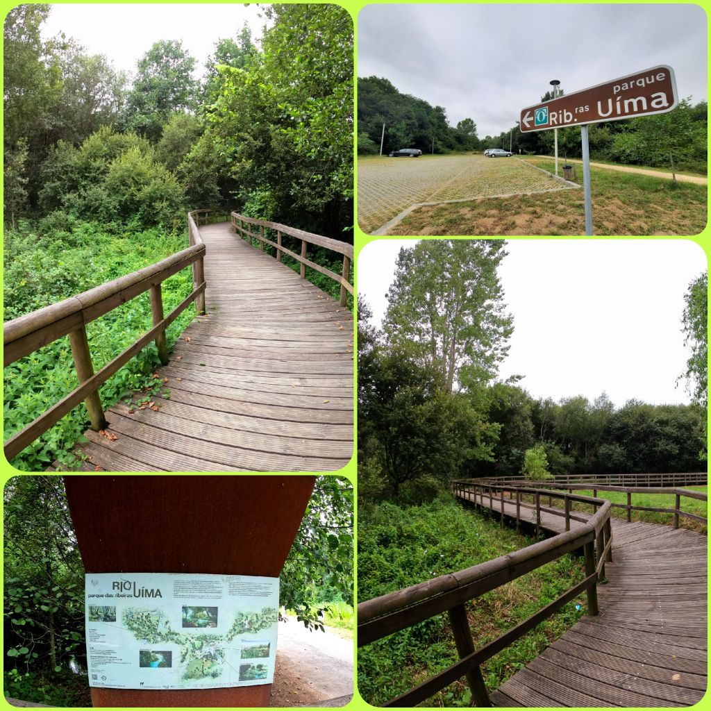 Deixo aqui uma breve descrição do lugar: existe muita sombra, o passadiço é robusto e seguro; a vegetação cresce em redor à sua vontade, nota-se que não há manutenção; as placas descritivas na maioria estão em branco; indicações também não existem, mas também não precisa porque é realmente pequeno e não há como enganar…; o Rio Uíma passa meio despercebido… existem alguns bancos ao longo do caminho; tem parque de estacionamento; existem também caixotes para o lixo e não existem instalações sanitárias.