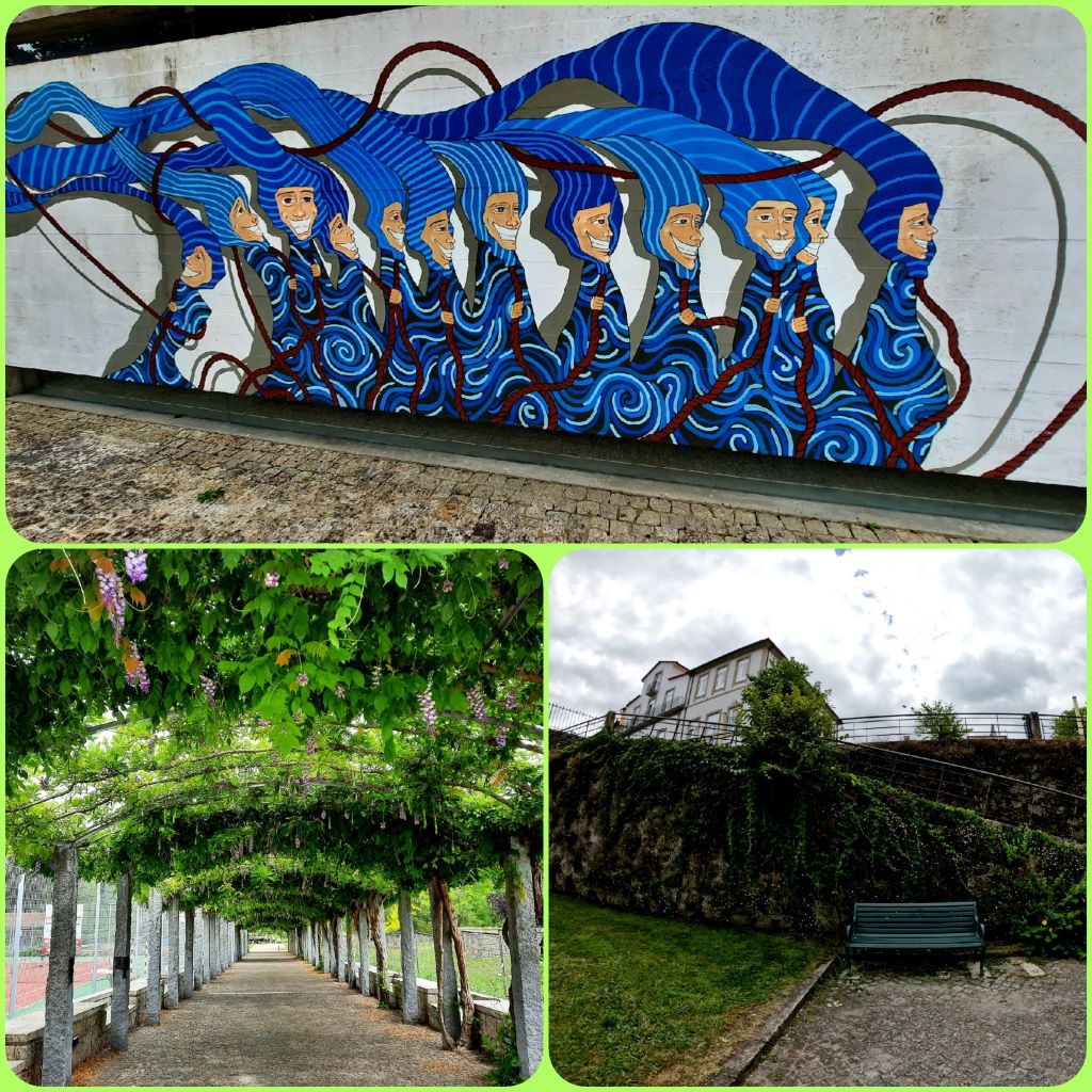Entretanto fomos à procura de arte urbana! A obra é denominada por Street Art by A Casa ao Lado “Um traço por Magalhães” Project! É evidente que encontramos a obra, mas pelo facto de não termos dado logo com o local e por mais que perguntássemos, ninguém sabia o que era…, pusemos o Google.Maps a trabalhar e lá demos com o sítio! Mas fica ao lado das piscinas municipais em frente aos campos de ténis, bem perto da Praia Fluvial e por isso voltamos a fazer o percurso inicial à beira rio até ao estacionamento! Estava na hora de visitar o último destino, Ponte de Lima!