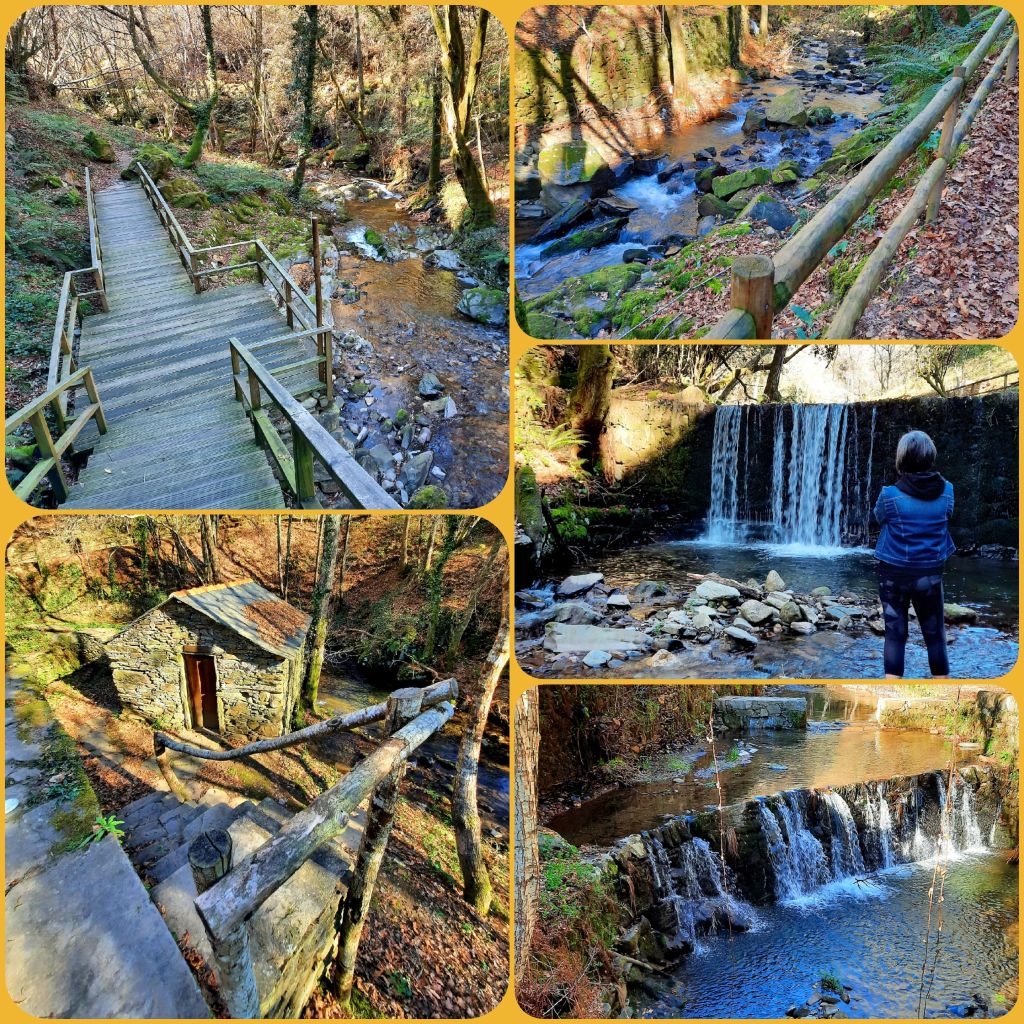 Durante o percurso pedonal, que não é grande, vamos encontrando: as Fontes; as Escadarias; os espaços de merendas com mesas, bancos e caixotes do lixo; o Moinho recuperado e as diversas quedas de água e até um pequeno espaço dedicado ao exercício físico!