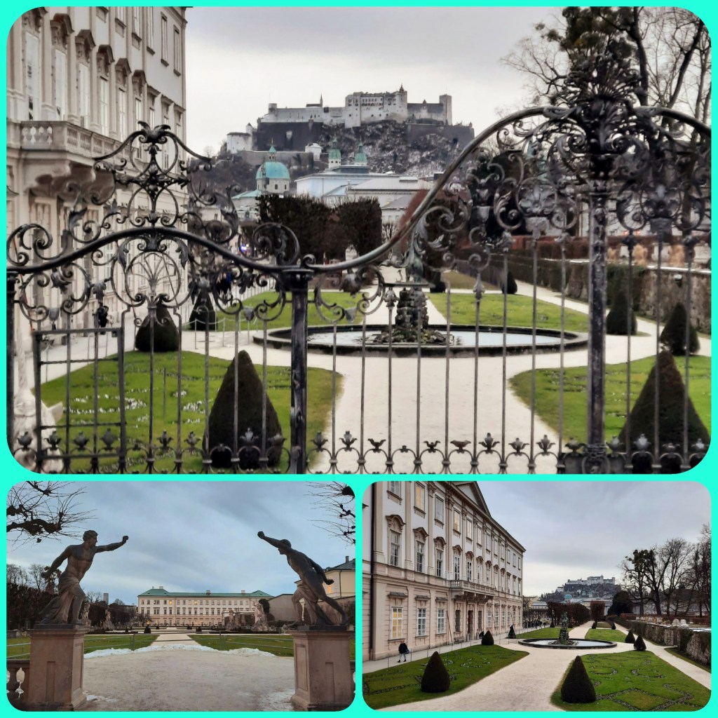 Os Jardins Mirabell são compostos por: a fonte Pegasus; a Igreja do Castelo; o Hedge Theatre; o Jardim dos Anões; o Jardim das Rosas e o Laranjal. É obvio que em pleno Inverno não vou dizer que fiquei deslumbrada com os jardins e infelizmente a maioria do espaço estava vedada para obras… Mas passear pelos jardins é grátis e vale sempre a pena uma caminhada, para além de terem sido palco de uma das cenas de um filme que marcou a minha infância e a de muitos, “The Sound of Music”/ “Música no Coração”, onde Maria e as crianças dançam em volta da fonte Pegasus, em frente ao palácio, enquanto cantam a música “Dó Ré Mi”! Daqui a vista para o Castelo Hohensalzburg é fantástica!