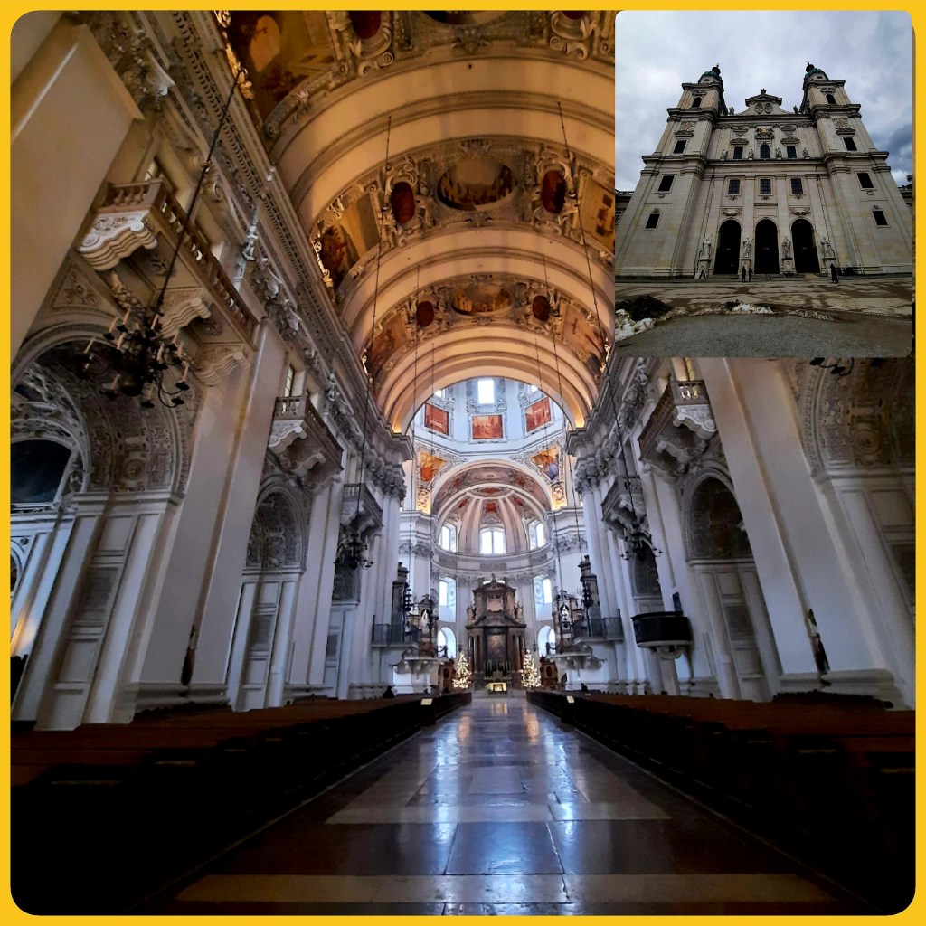 Imponente e carregada de história , a Catedral de Salzburg foi fundada no ano 774 por St. Rupert sobre o que restava de uma cidade romana, após um incêndio em 1167 foi reconstruída, em 1598 outro devastador incêndio e novamente reconstruída e a 16 de Outubro de 1944, na Segunda Guerra Mundial, a cidade foi duramente bombardeada e a Catedral foi um dos alvos e ficou parcialmente destruída. Mozart foi baptizado aqui e a pia baptismal de bronze datada de 1321 está exposta na catedral. Apesar de supostamente a entrada ser gratuita, paguei €5 para visitar.